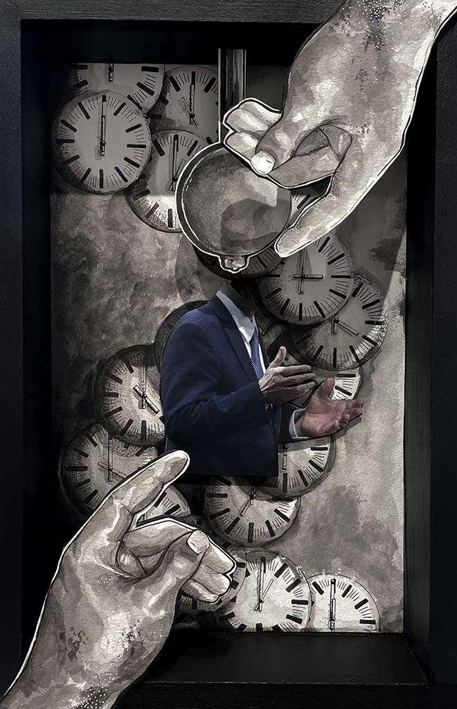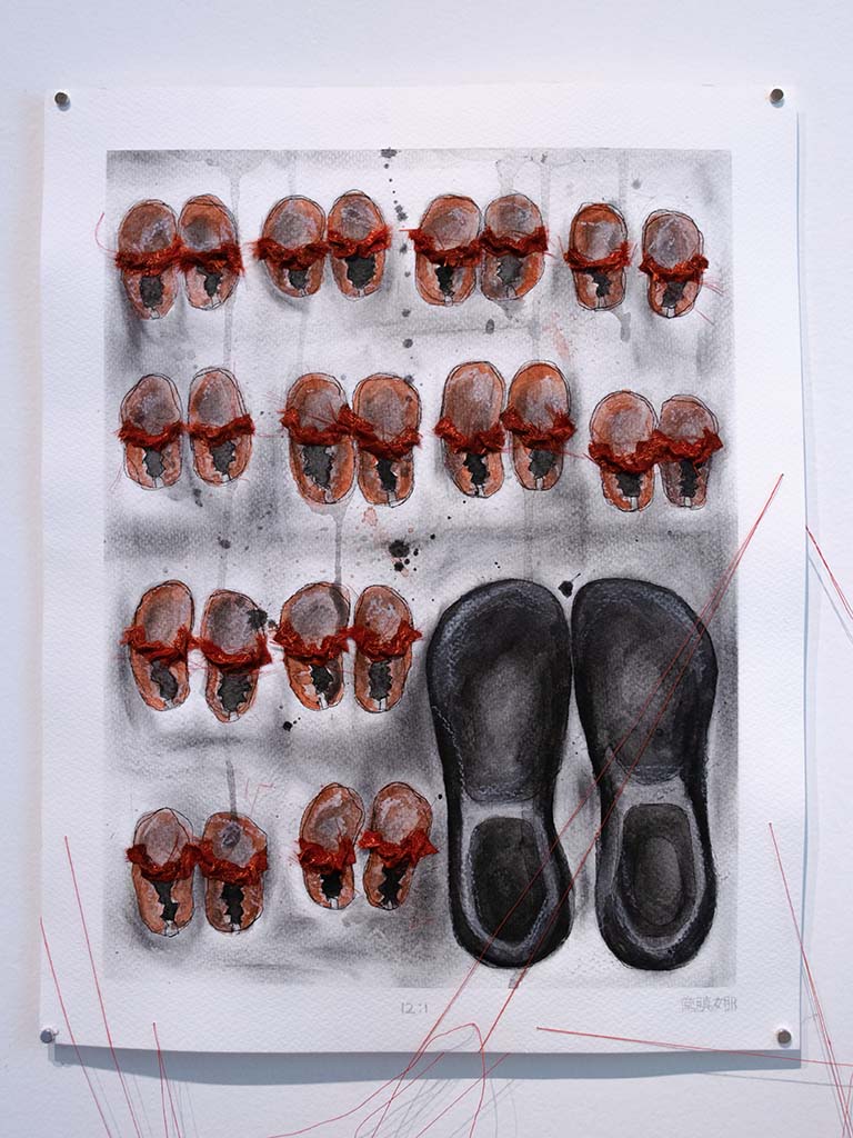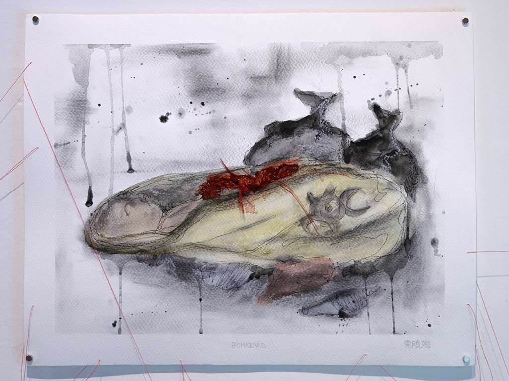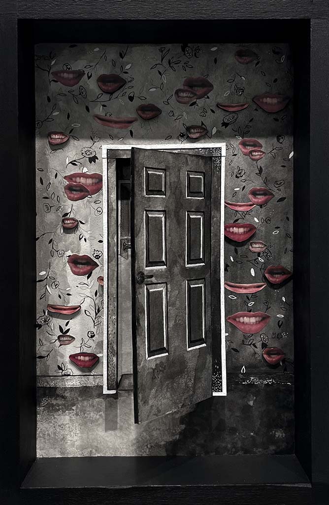 india ink, micron pen, and collage on watercolour paper, 17.5 x 11.5 x 3.5 inches, 2021 -