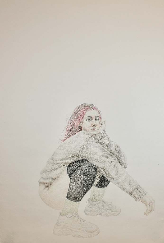 graphite and Prismacolor pencils on paper, 42 x 31 inches, 2022 -