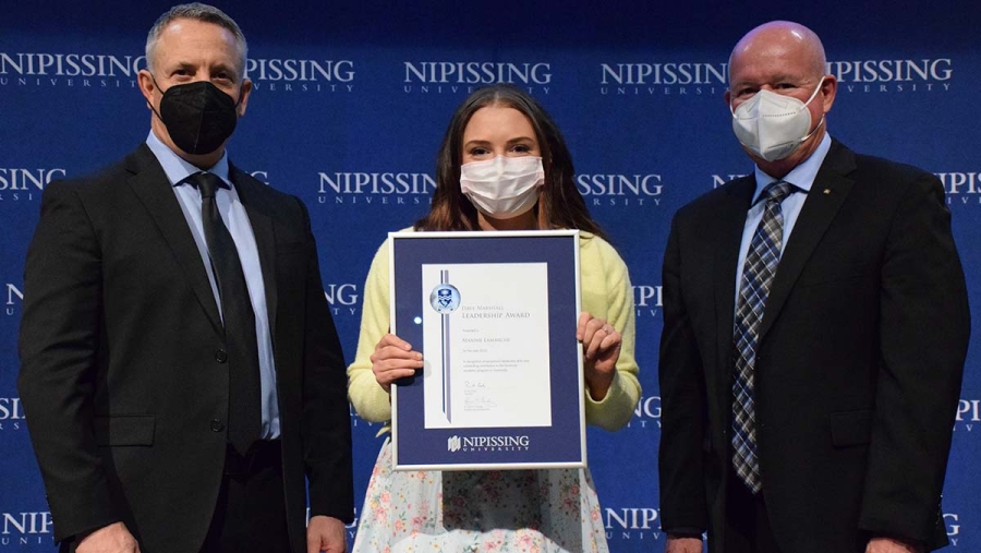 Annually, 25 full-time students are recognized with a Dave Marshall Leadership Award. These students have made an outstanding extracurricular contribution to their academic program, to the campus, or to the greater community. They have demonstrated leadership, initiative, commitment, and an ability to motivate and influence others toward the betterment of Nipissing University.