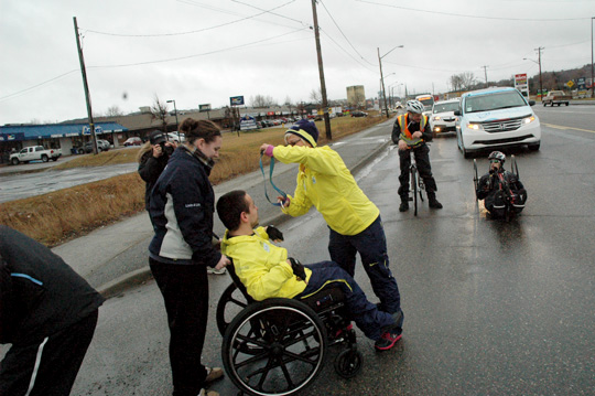 On Thursday, December 15, 2011, Nipissing student Kevin Salzman became 1 of 7000 medal bearers in the Rick Hansen Relay that passed through Sudbury to commemorate the 25th anniversary of Hansen’s famous Man in Motion Tour. It was a once-in-a-lifetime opportunity for Kevin and he felt privileged to be representing Nipissing as he wheeled 250 metres, while proudly wearing the medal around his neck. Kevin was an inspiration to the other relay members and they were moved by his life story.
