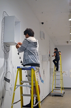 Nahúm Flores, Erik Jerezano, and Ilyana Martínez are the members of this Toronto-based artist collective. Formed in 2004, the group meets weekly to collaborate on drawing, painting, collage, sculpture, and site–specific drawing installations. Their quirky and often outrageous images explore ideas of transition, displacement, containment and evolution. Their stories depict totemic mystical creatures and hybrid beasts that portray visual synonyms to tell complex and surrealistic tales.