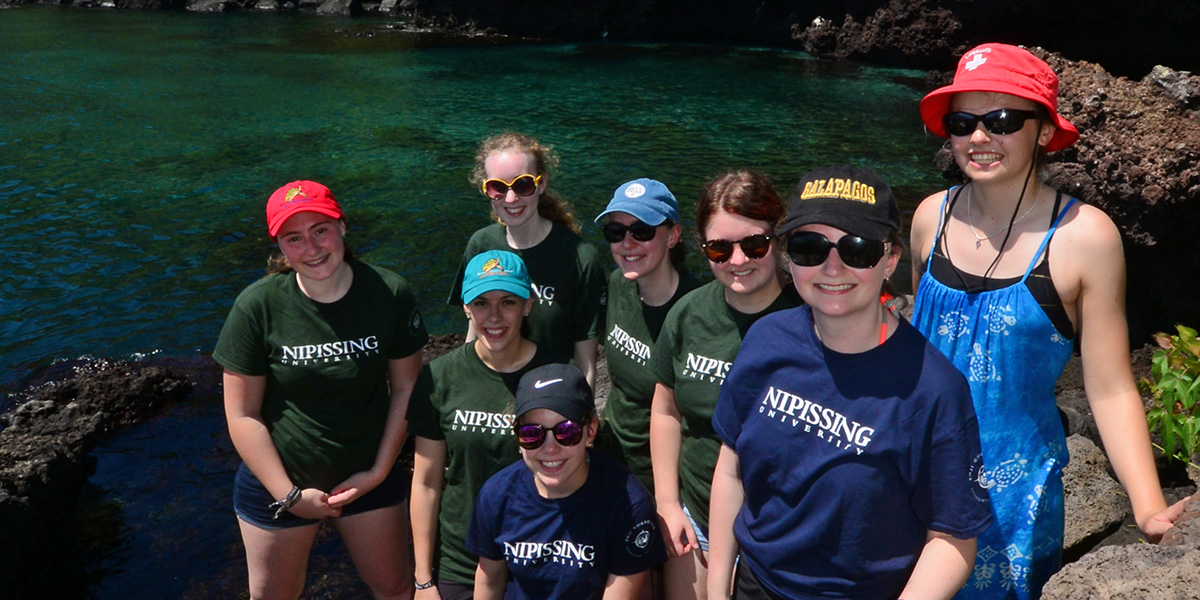 Nipissing University Biology students pictured at Darwin Bay on Isla San Cristobal, the spot where Charles Darwin first set foot on the Galapagos Islands .