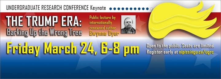 First Brexit, now Trump. Two of the world’s oldest democracies have made bizarre, self-harming political choices that astounded and dismayed the rest of the world (as well as half of their own voters.). Once could be a fluke, but twice in five months looks like a trend. Author Gwynne Dyer will answer that question in his keynote address on Friday March 24 in the Nipissing University Theatre starting at 6 pm. This event is free. Register early, seats are limited.